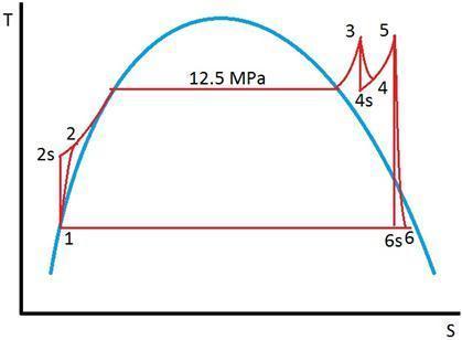 at 12.5 MPa and 550⁰c ; h3 = 3476.5 kJ/kg,  S3 = 6.6317 kJ/kgK