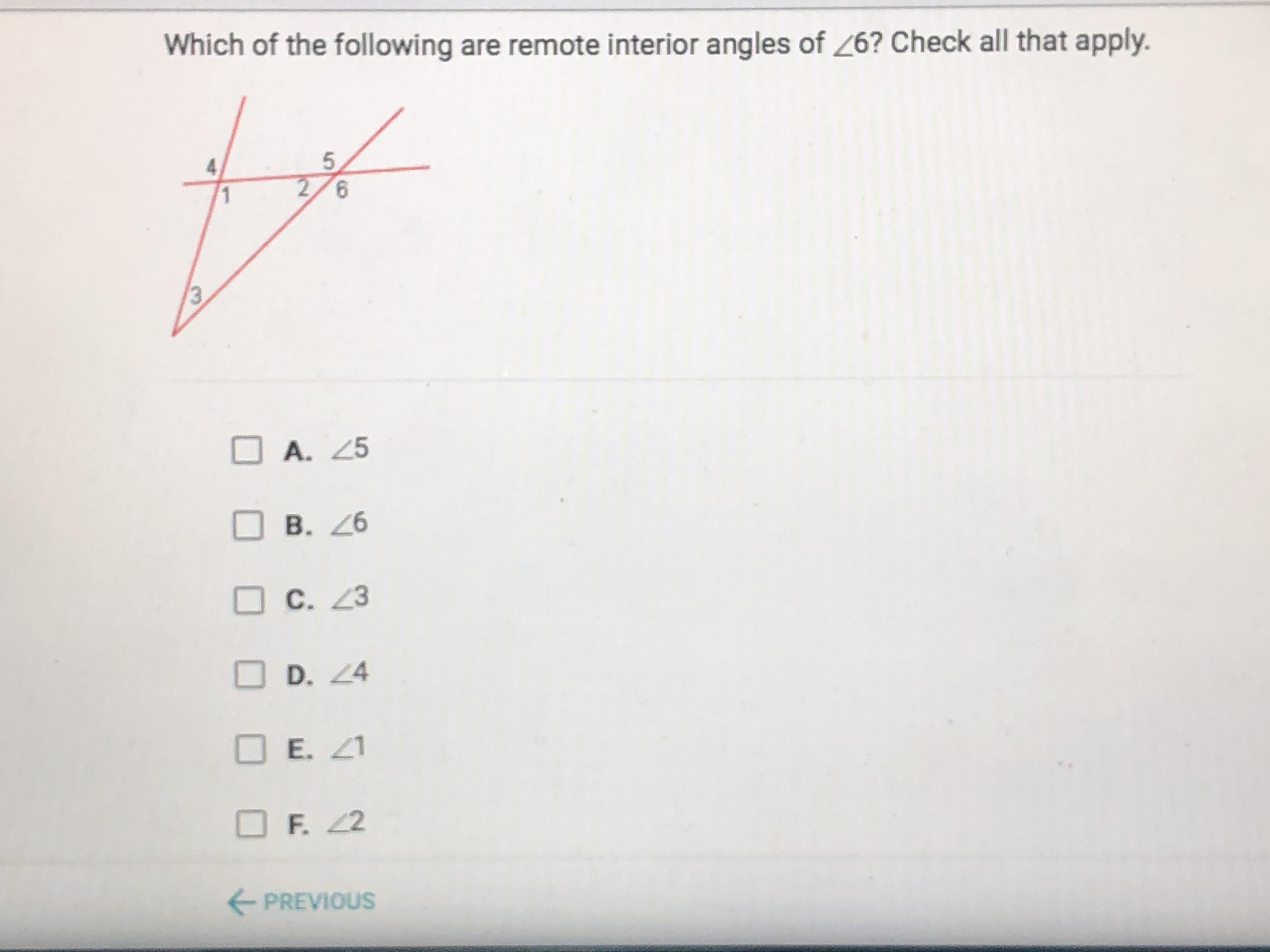 Which of the following are remote interior angles of <6? check all that apply