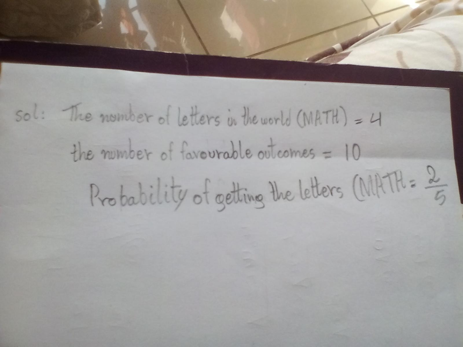 So the probability of you getting the letters "M" "A" "T" "H" is 4/10 or 2/5.