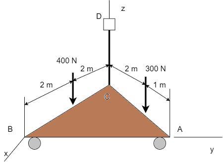 A plate is supported by a ball-and-socket joint at A, a roller joint at B, and a cable at C. How many unknown support reactions