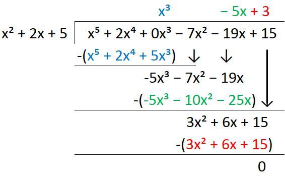 (x⁵ + 2x⁴ + 0x³) − (x⁵ + 2x⁴ + 5x³) = -5x³