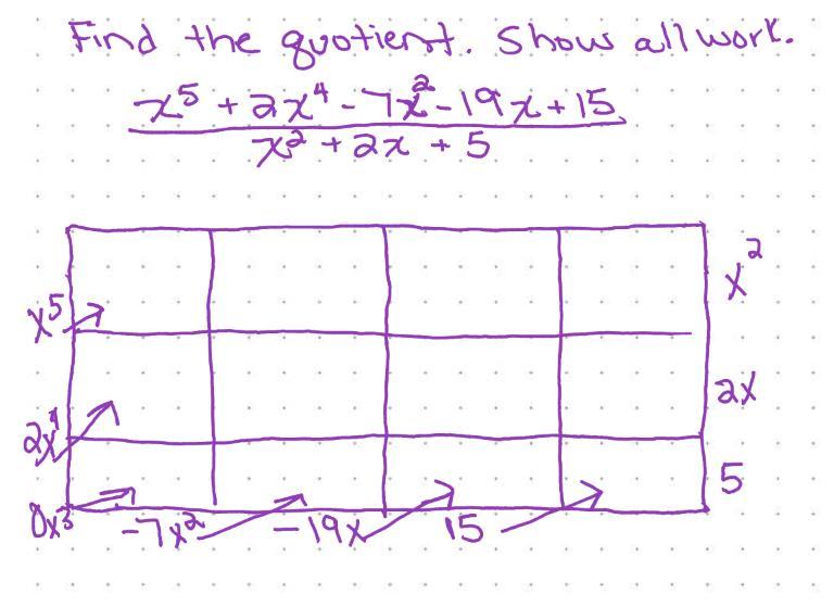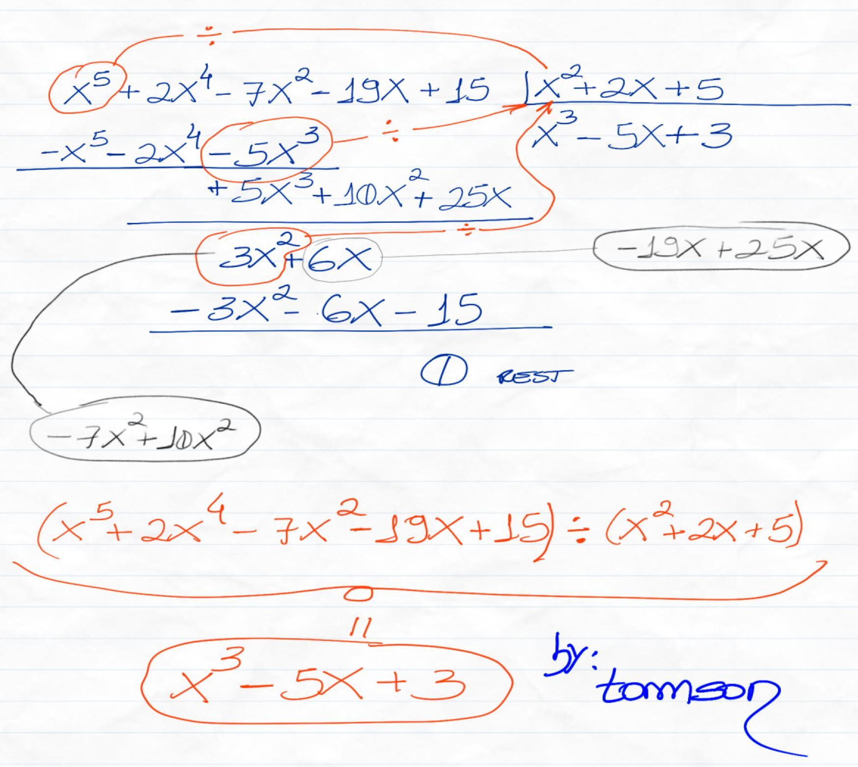 x³ (x² + 2x + 5) = x⁵ + 2x⁴ + 5x³