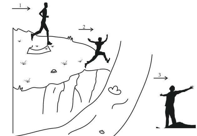 As Captain Sam Brady jumps from the cliff, he moves in two dimension under the action of gravity.
