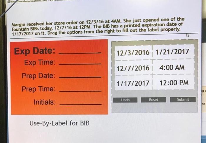 The time which Margie opened the order is