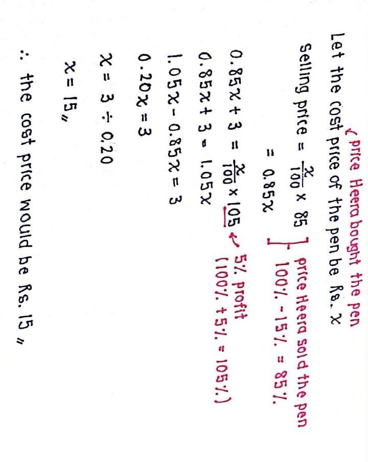 (b) Heera sold a pen at the loss of 15%. Had she sold it in Rs. 3 more, she should have 5%