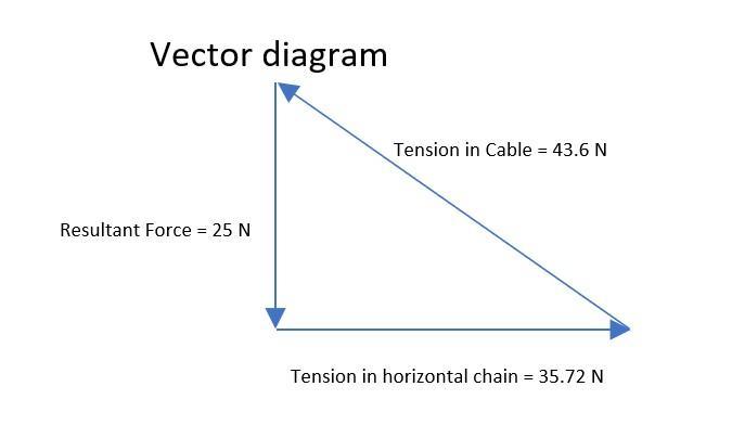 Therefore, from ∑Fₓ = 0 and ∑F_y = 0, since the horizontal force in the chain will balance the horizontal component of the tension in the cable, there will be no net horizontal force and the resultant force will have a direction of the vertical y-axis