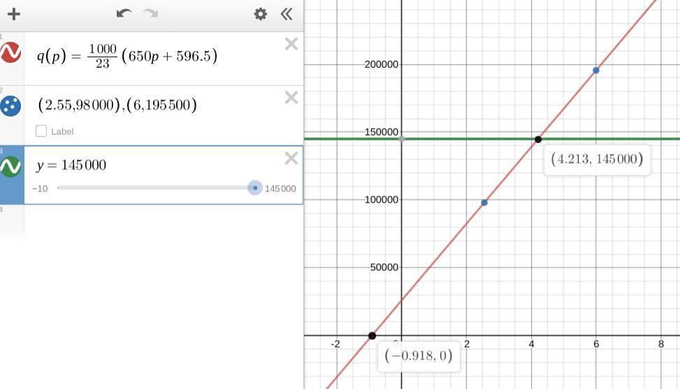 q = (195500 -98000)/(6.00 -2.55)(p -2.55) +98000