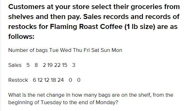 Net change = 1 + 4 + 10 + (-1) + 2 + (-15) + (-3)