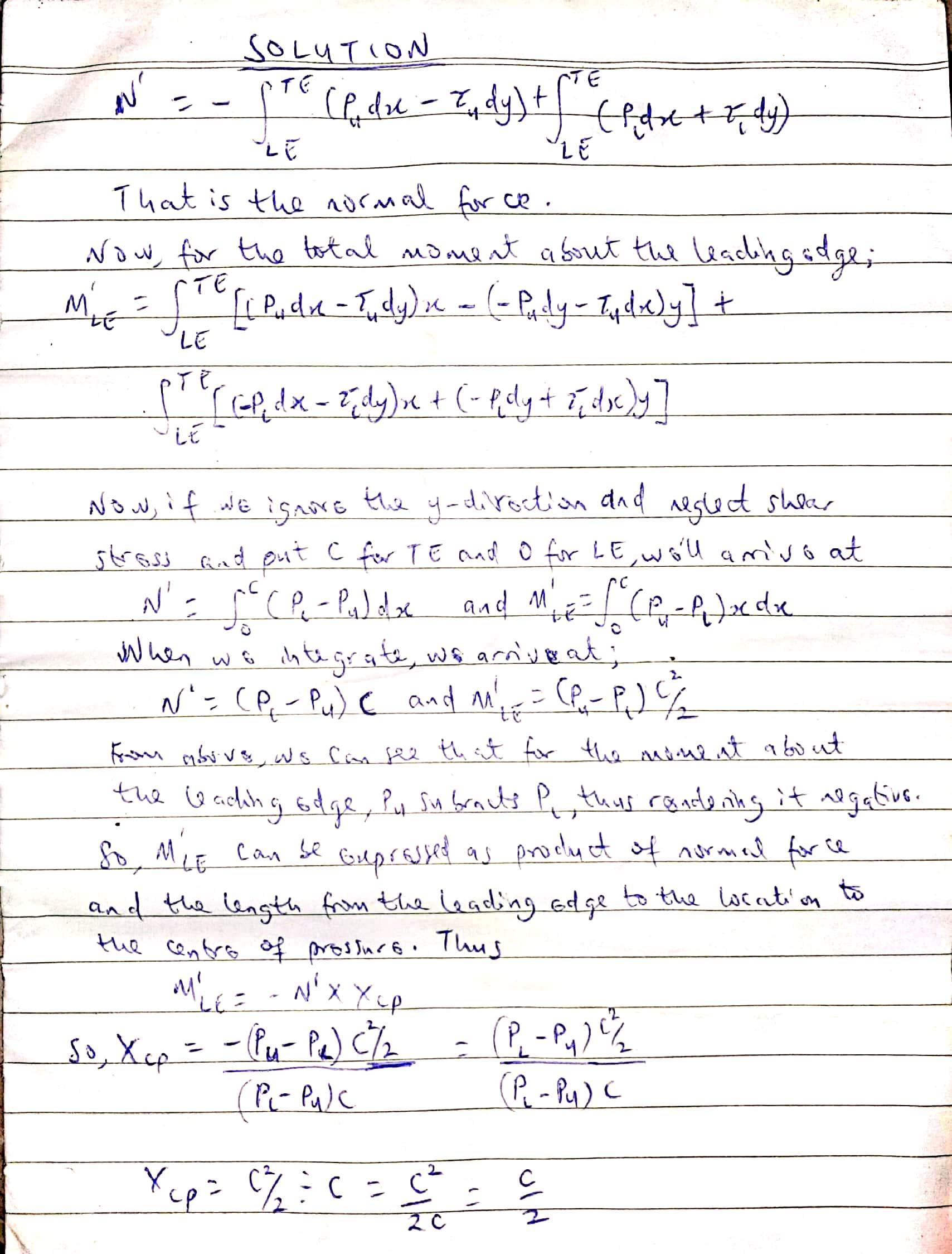 First of all, we need to find the resultant normal force on the plate and the total moment about leading edge.