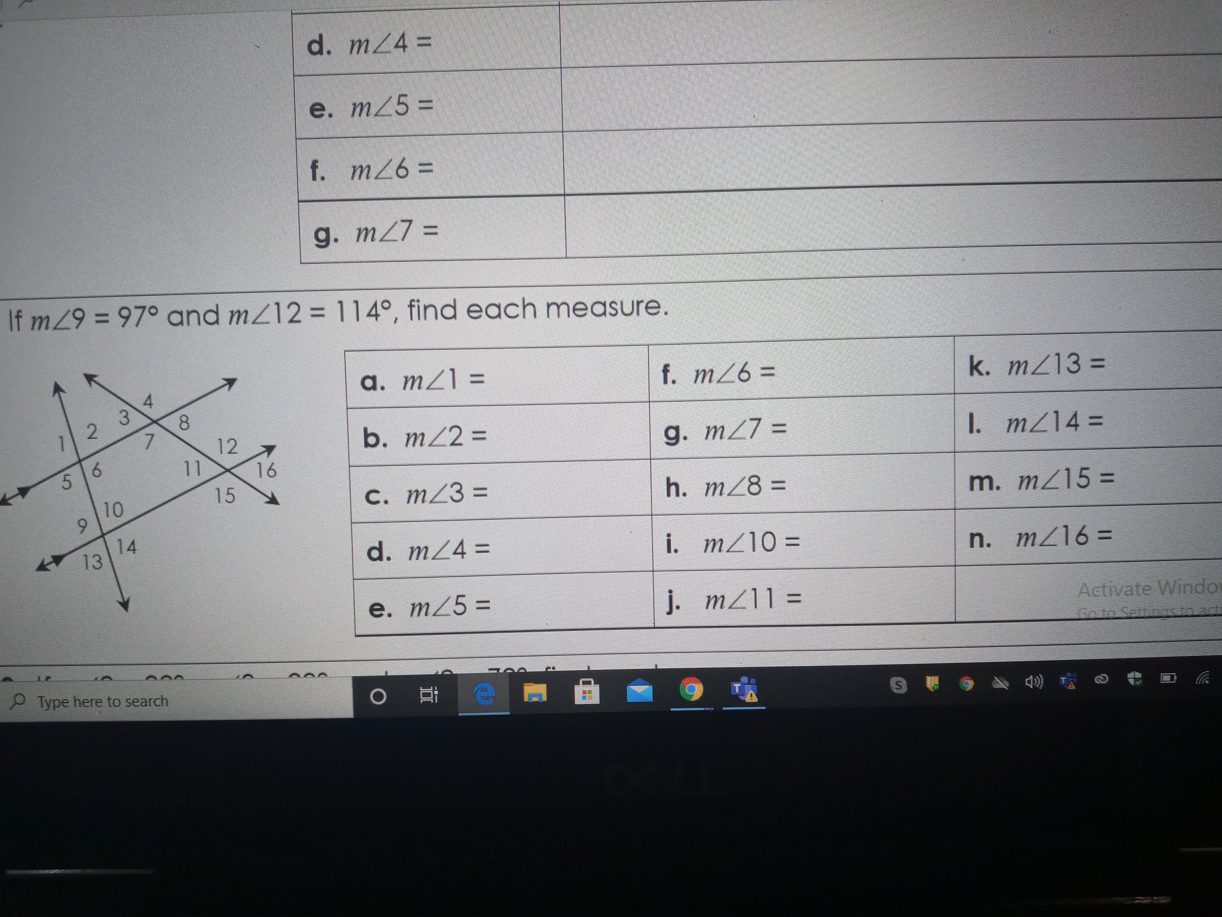 a. m<1 = m<9 (both angles are corresponding angles. Corresponding angles are congruent)