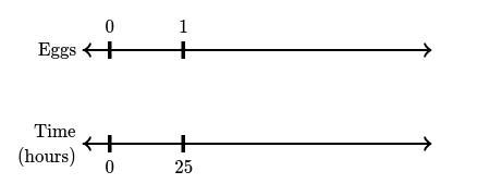The double number line shows the amount of time a hen needs to lay 111 egg.