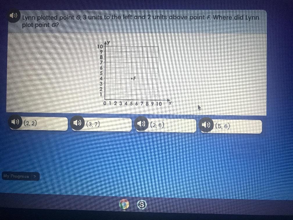 Lynn plotted point G, 3 units to the left and 2 units above point F. Where did lynn plot point G?