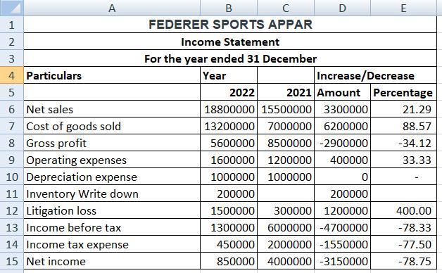 The Preparation of horizontal analysis for 2022 using 2021 as the base year is prepared with the help of a spreadsheet.
