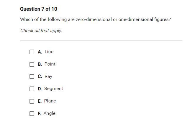 Which of the following are zero-dimensional or one-dimensional figures?
