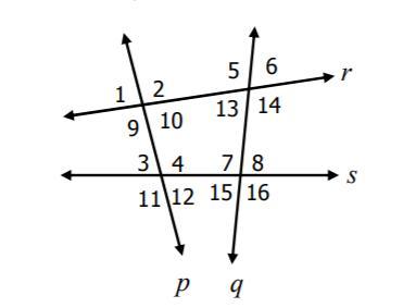 ∠1 and ∠4, ∠2 and ∠3, ∠5 and ∠8, ∠6 and ∠7, ∠9 and ∠12, ∠10 and ∠11, ∠13 and ∠16, ∠14 and ∠15, ∠6 and ∠12, ∠5 and ∠11, ∠1 and ∠16, ∠2 and ∠15, ∠1 and ∠8, ∠2 and ∠12, ∠9 and ∠7, ∠10 and ∠8