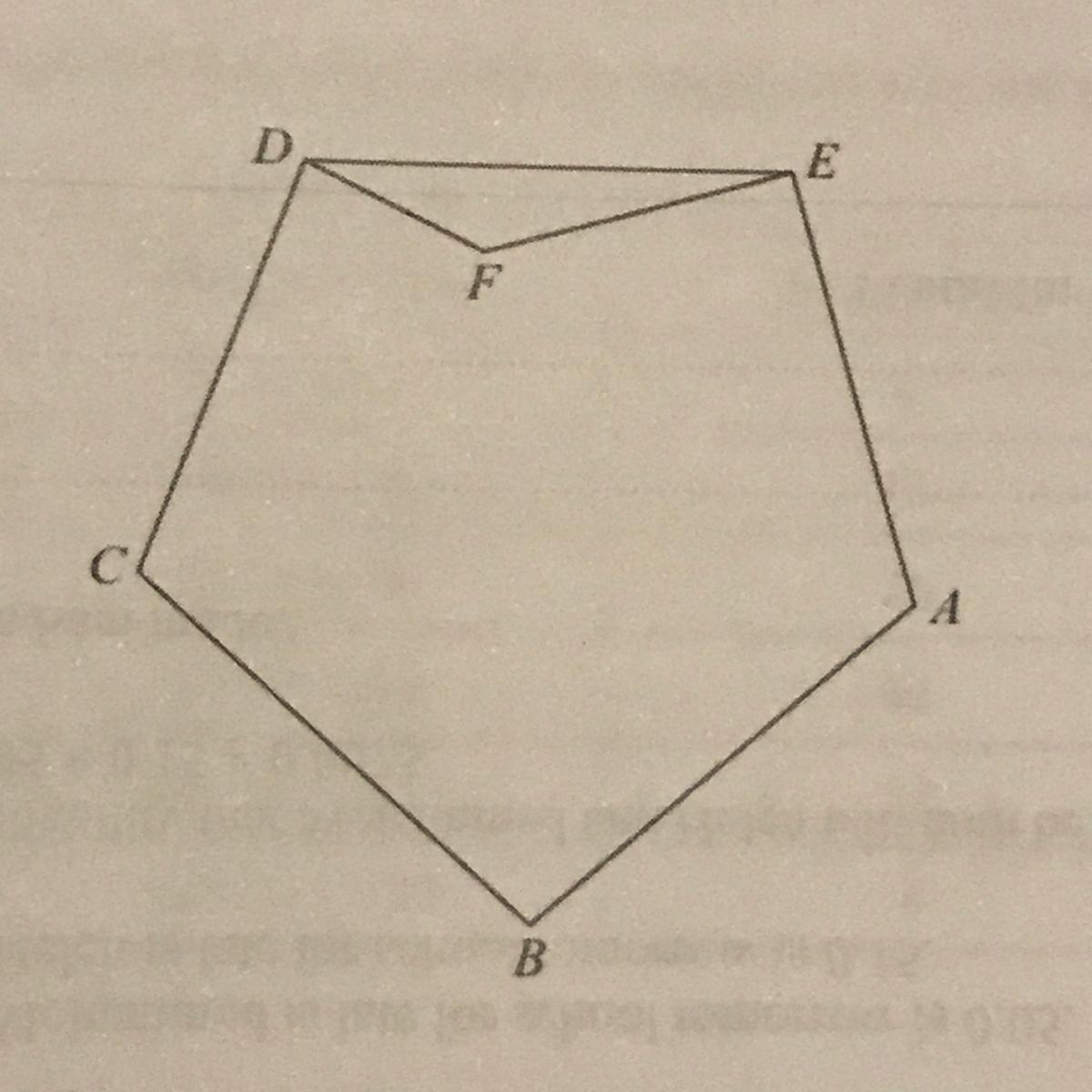 We're told that CDF is 70 degrees. From part (A) we know that angle CDE is 108 degrees, so this must mean that angle EDF is 108-70 = 38 degrees.