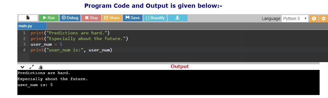 print('Predictions are hard.") print(Especially about the future.) user_num = 5 print('user_num is:' user_num)
