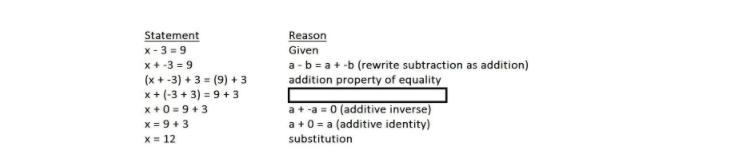 In the given step, (x+-3)+3 is written as  x+(-3+3).