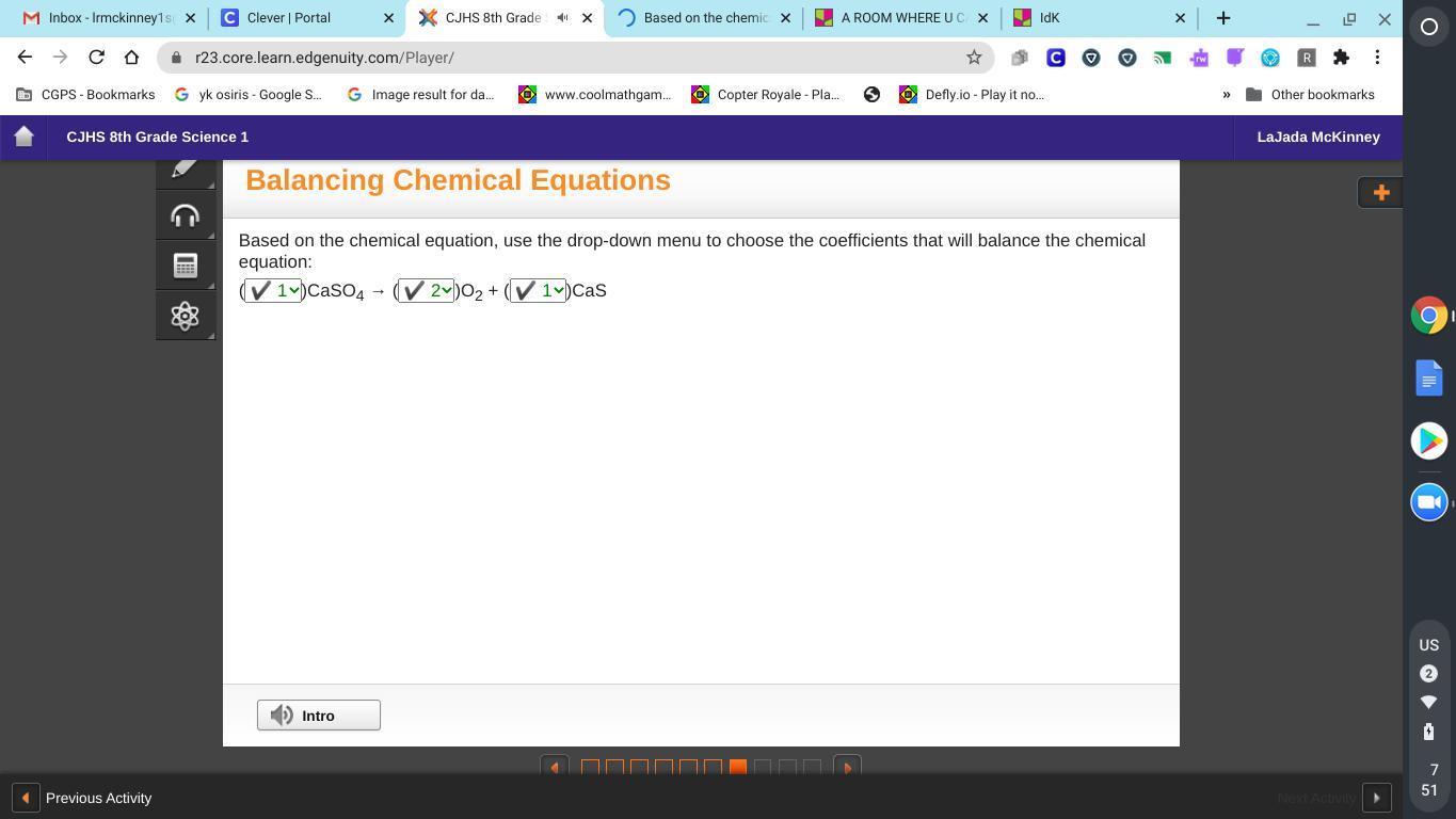 Based on the chemical equation, use the drop-down menu to choose the coefficients that will balance the chemical equation: