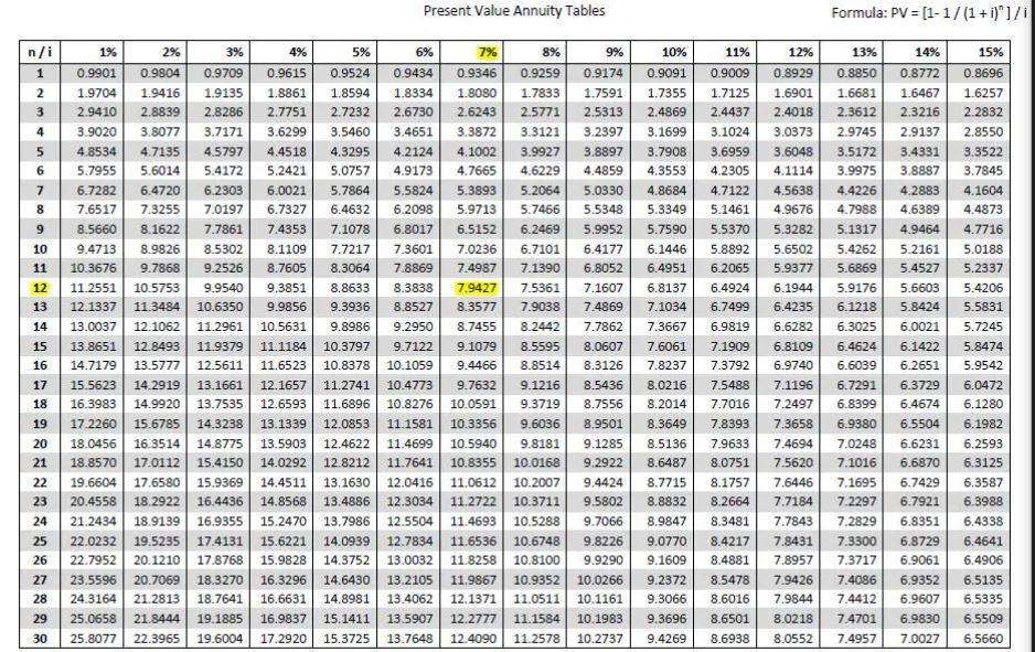 Present value of maintenance= 1,000 * Present value factor of annuity,  10 years, 8%