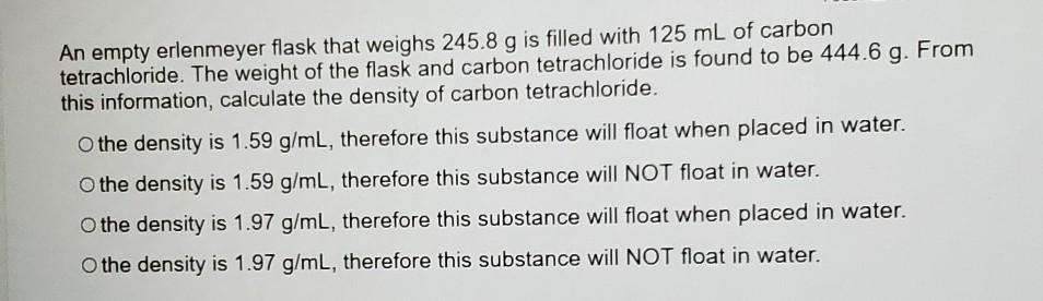 Density of CCl₄ = 1.59 g/mL