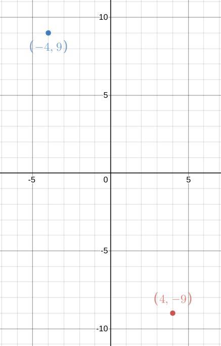 - Reflection across the x-axis: (-4, -9) ⇒ (-4, -9*-1) ⇒ (-4, 9)