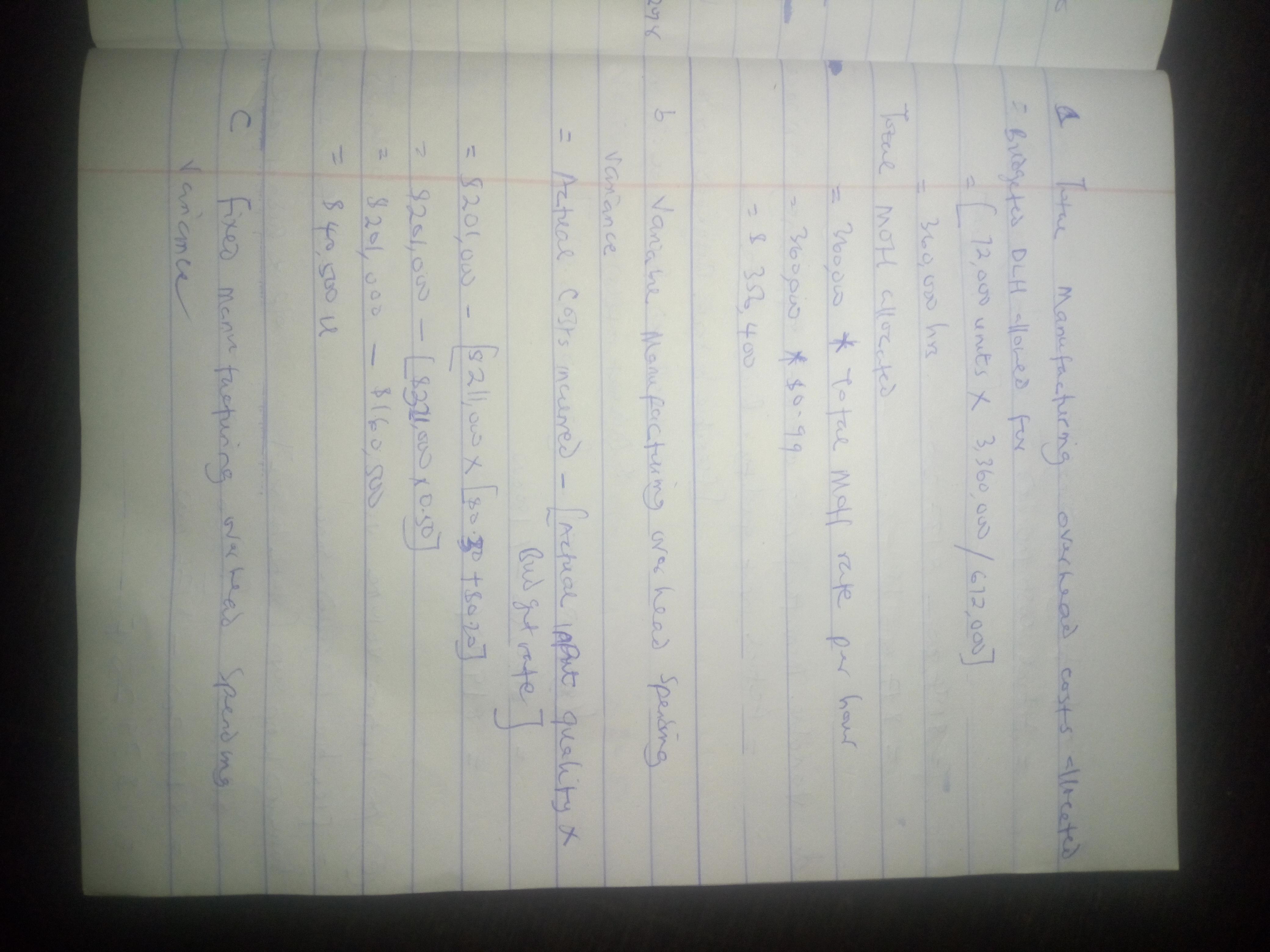 A total of 72,000 output units requiring 321,000 DLH was produced during May 2014. Manufacturing overhead (MOH) costs incurred for May amounted to $ 355,800. The actual costs, compared with the annual budget and 1/12 of the annual budget, are as follows: