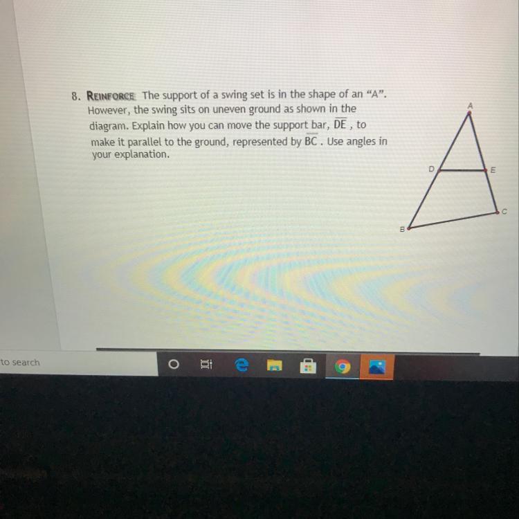 8. REINFORCE The support of a swing set is in the shape of an "A".