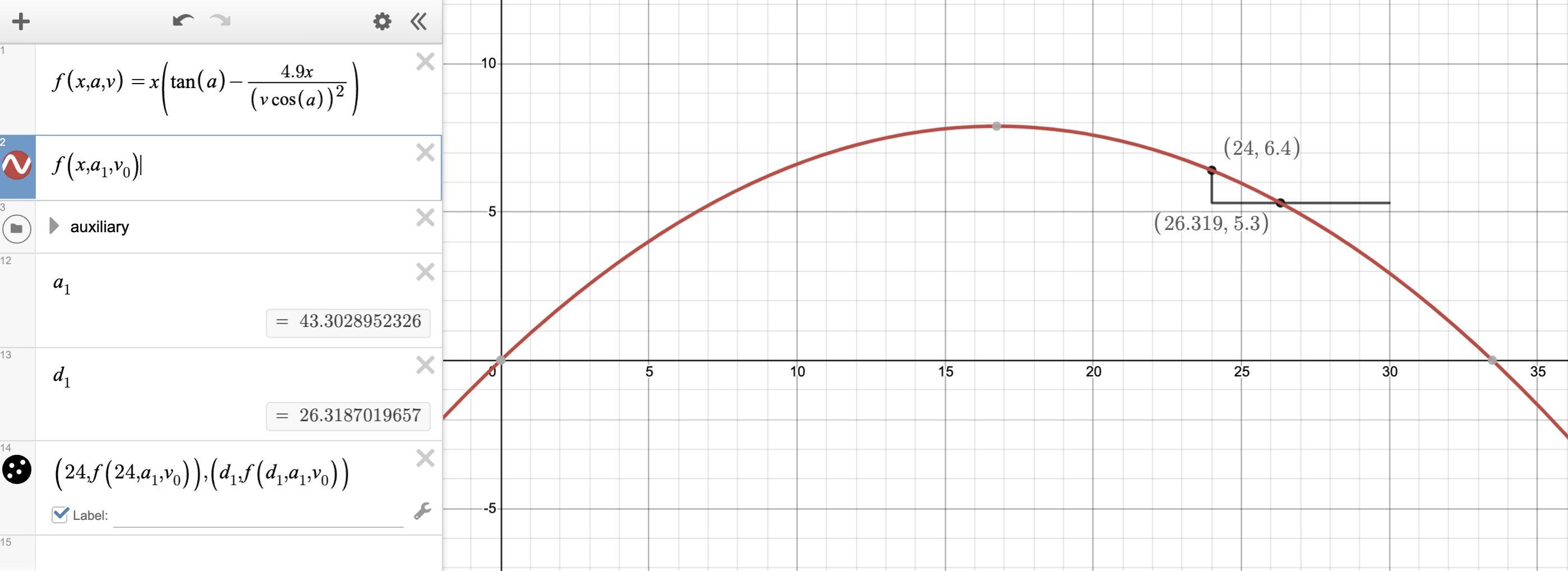 6.4 = 24(tan(α) -24(4.9/18.126983^2·sec(α)^2)
