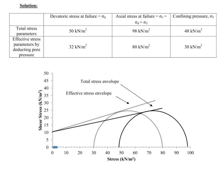 4) Pore pressure at failure  = u = 18 kN/m^2