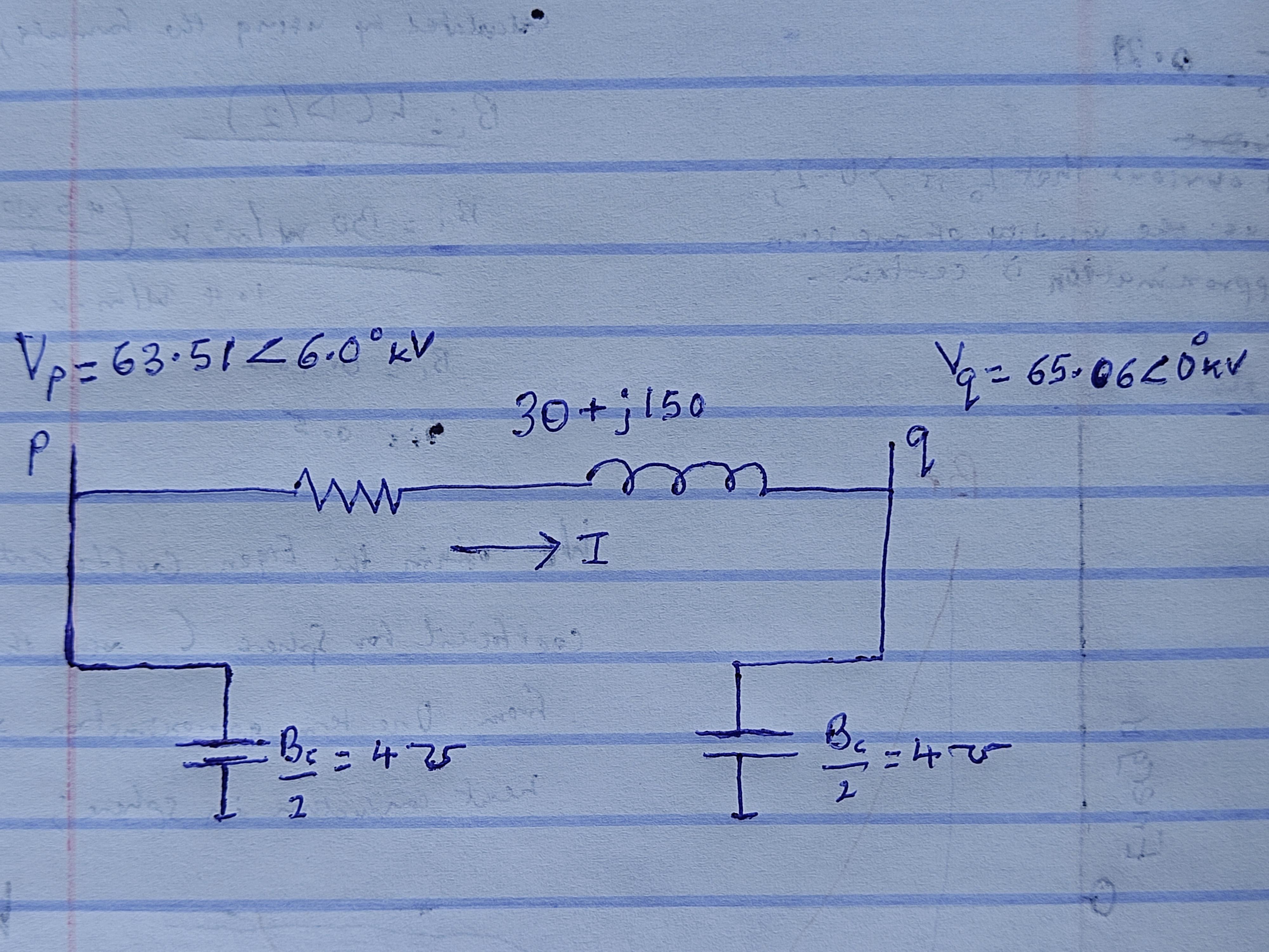 phasemhosBc/42. The line to neutral voltages at buses p and q are kVVp0.651.63and kVVq006.65, respectively. Compute lossP, the three phase real power losses in MW for this transmission circuit.