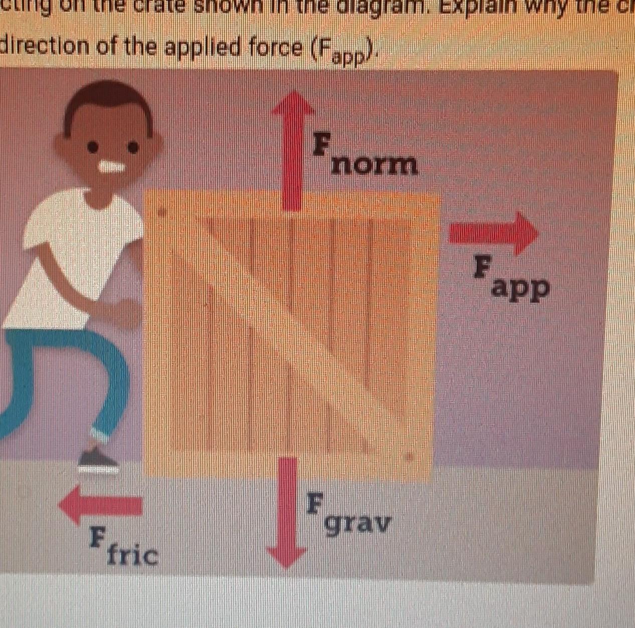 The crate will not move in the direction of (Fapp) because the force of friction is greater which keeps the crate from moving.