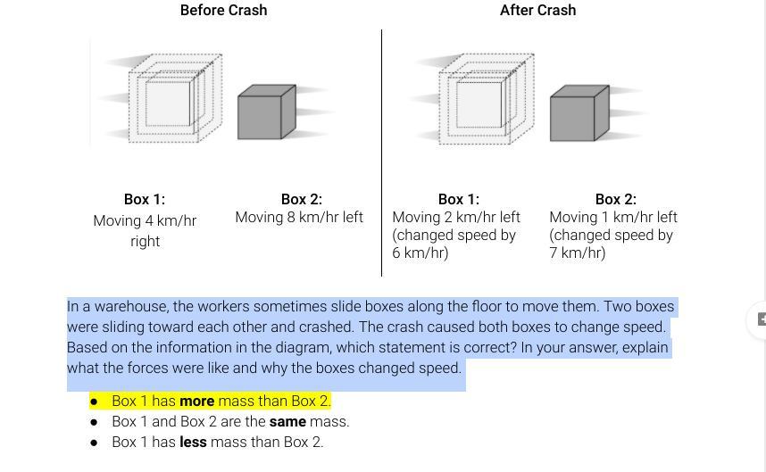 The acceleration of block 1 is due to the force exerted by block 2 during the moment change