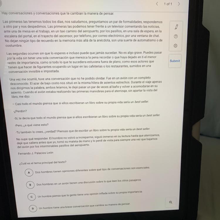 Este texto trata de una reflexión sobre las conversaciones. El cuento original titulado "Best-sellers" fue publicado en 2013 por el