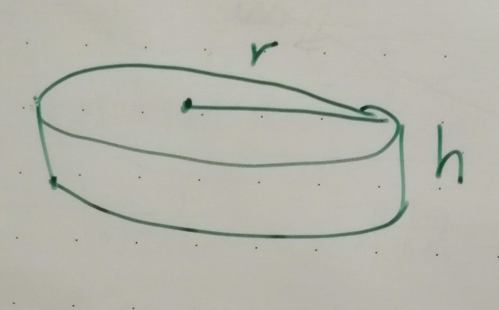 In order to solve this problem, we must first picture a cylinder of height h and radius r (see attached picture).