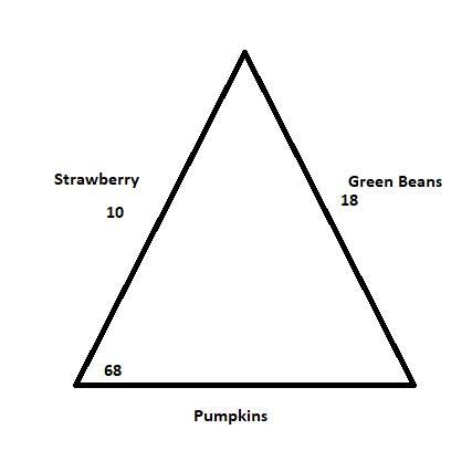 n an 18 ft line. If the third side, a line of pumpkins, makes an 68 degree angle with the strawberries, determine the length of the pumpkins.