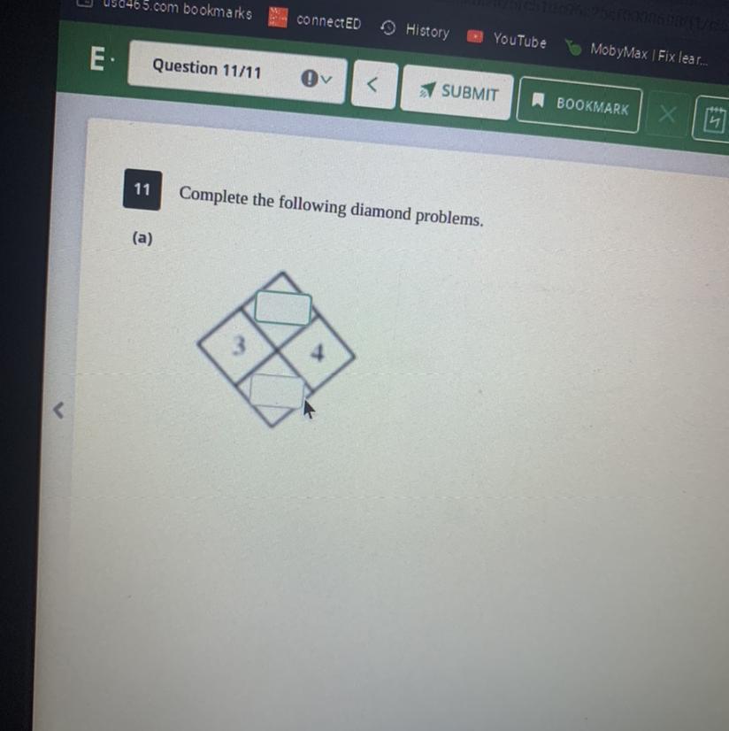 The rules of a diamond problem states that, one should add the two numbers (3 and 4) to get the value in the bottom cell and multiply the two numbers (3 and 4) again to get the value in the top cell.