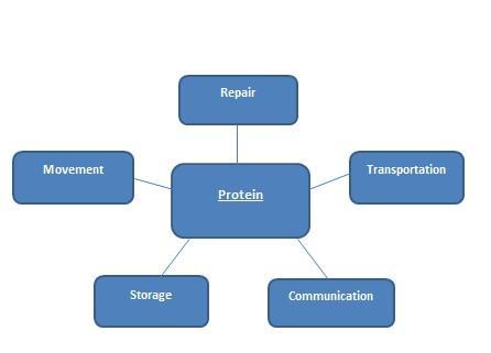 The amino acid sequence (primary structure) defines the three-dimensional shape of the proteins and its function as well. The proteins carry out most of the work in the cell that includes repair and structure maintenance, energy, transportation and storage of molecules, enzymes, hormones, and antibodies. The proteins provide support and structure to the cell. They help in the movement of the body also. Actin is an example of structural protein.