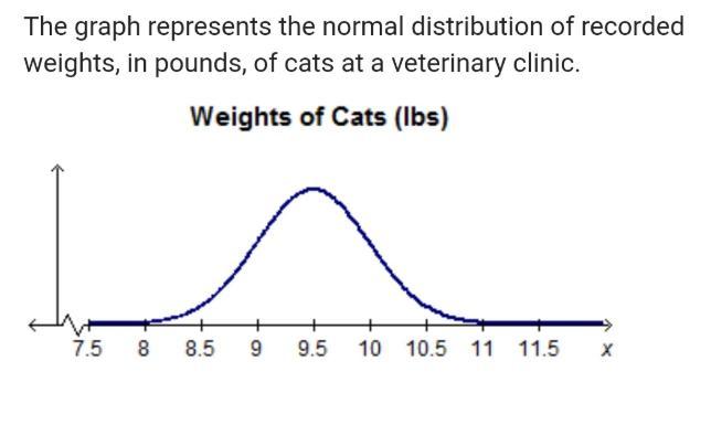 We have been given that graph represents the normal distribution of recorded weights, in pounds, of cats at a veterinary clinic. We are asked to choose the weights, which are within 2 standard deviations of the mean.
