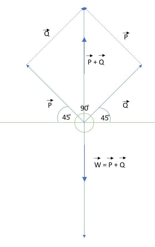 The angle P and Q makes with the horizontal = 45°
