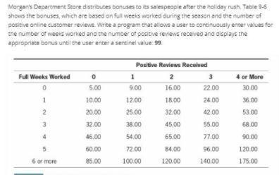 System.out.println("Bonus : $"+bonus); System.out.print("Weeks: "); weeks = input.nextInt(); System.out.print("Positive Reviews: "); reviews = input.nextInt();