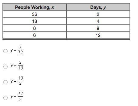 The table below shows the number of days, y, needed to complete a project as a function of the number of full-time staff, x, wor