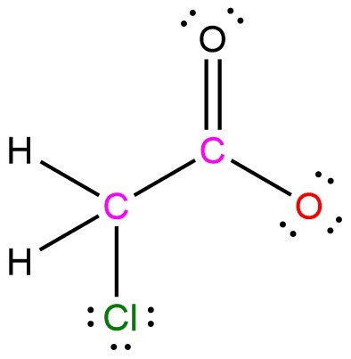 Write the lewis structure for ch2clcoo−. assign a formal charge for any atom with a non-zero formal charge.