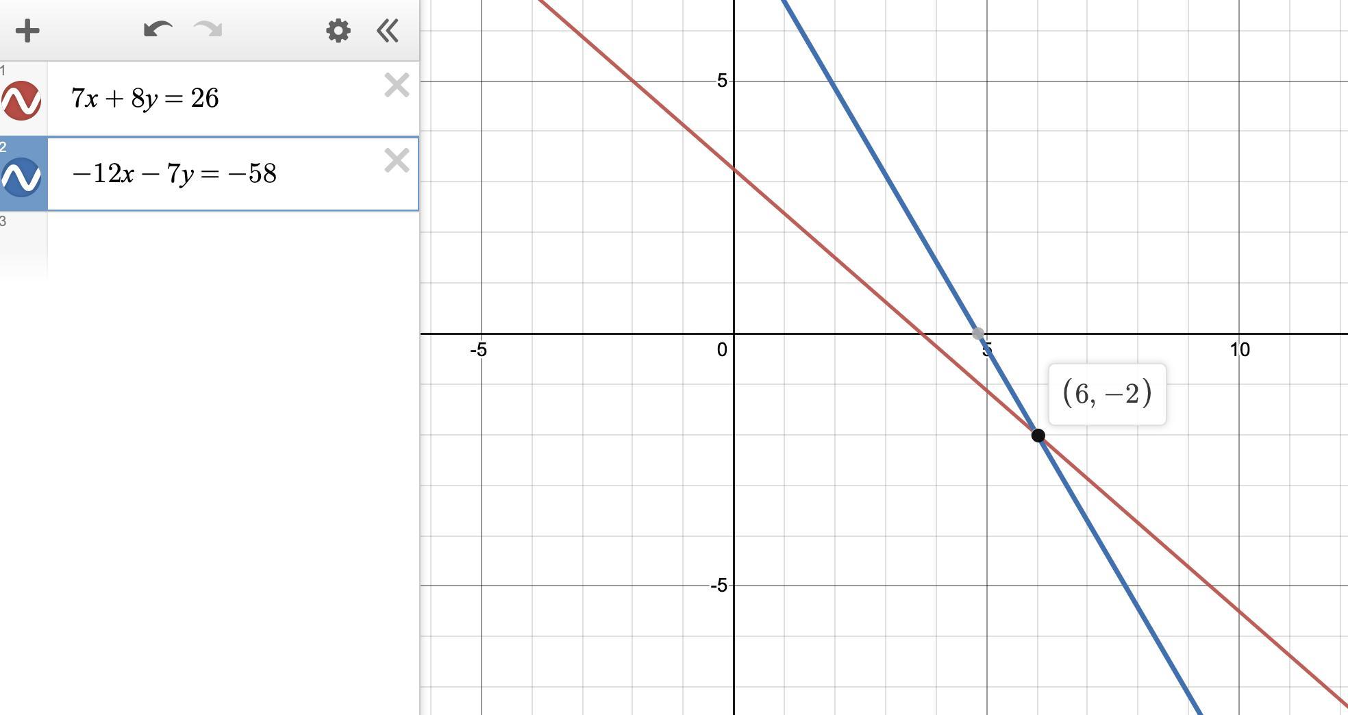 The solution is (x, y) = (6, -2).