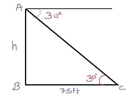 and the distance of the point C from the base B is 75 feet