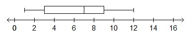 The box plot will have a whisker at 1; left side of the box at 3; middle line of the box at 7; right side of the box at 9; and whisker at 12.