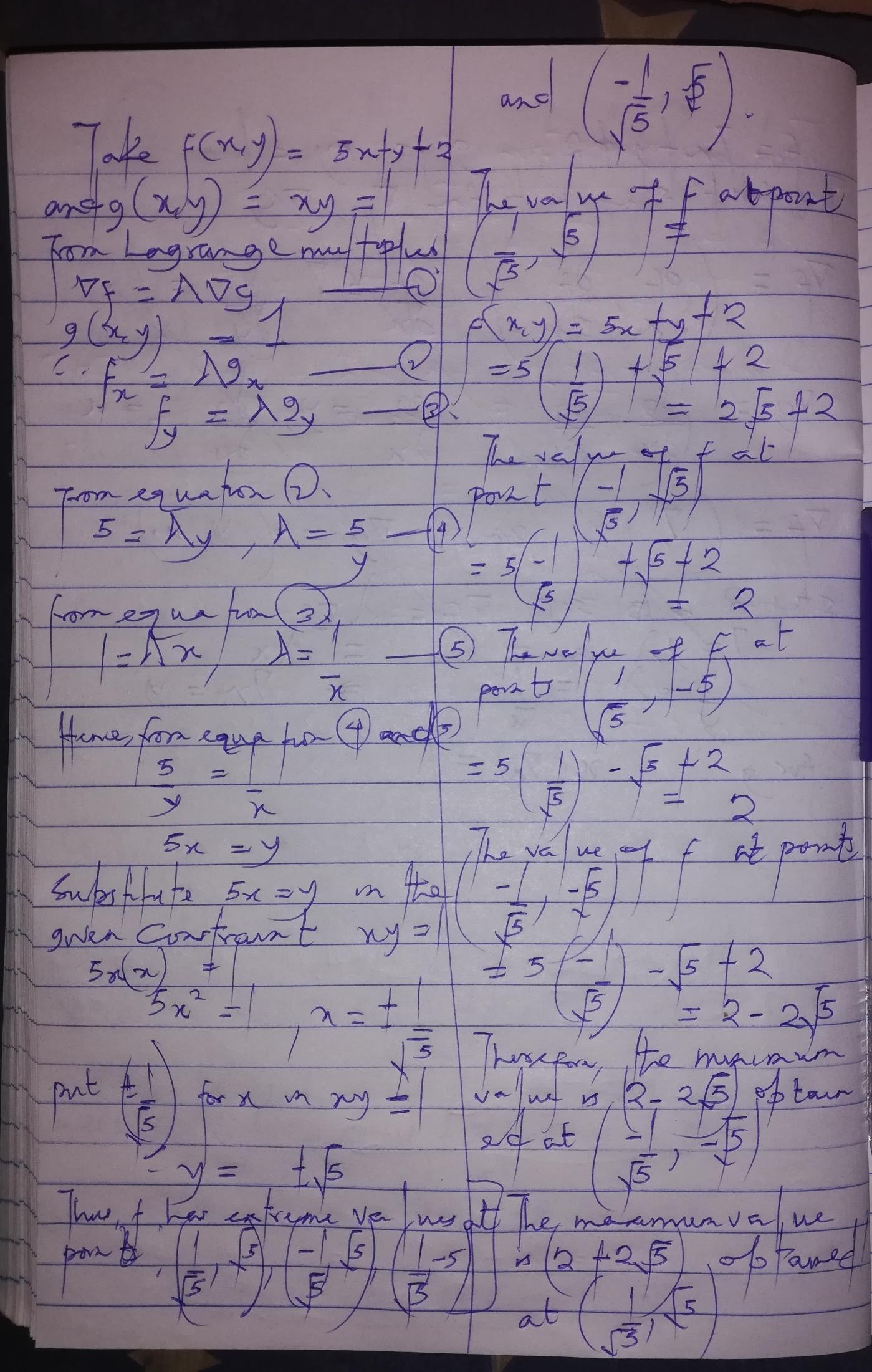 Given f(x, y) = 5x + y + 2 and g(x, y) = xy = 1