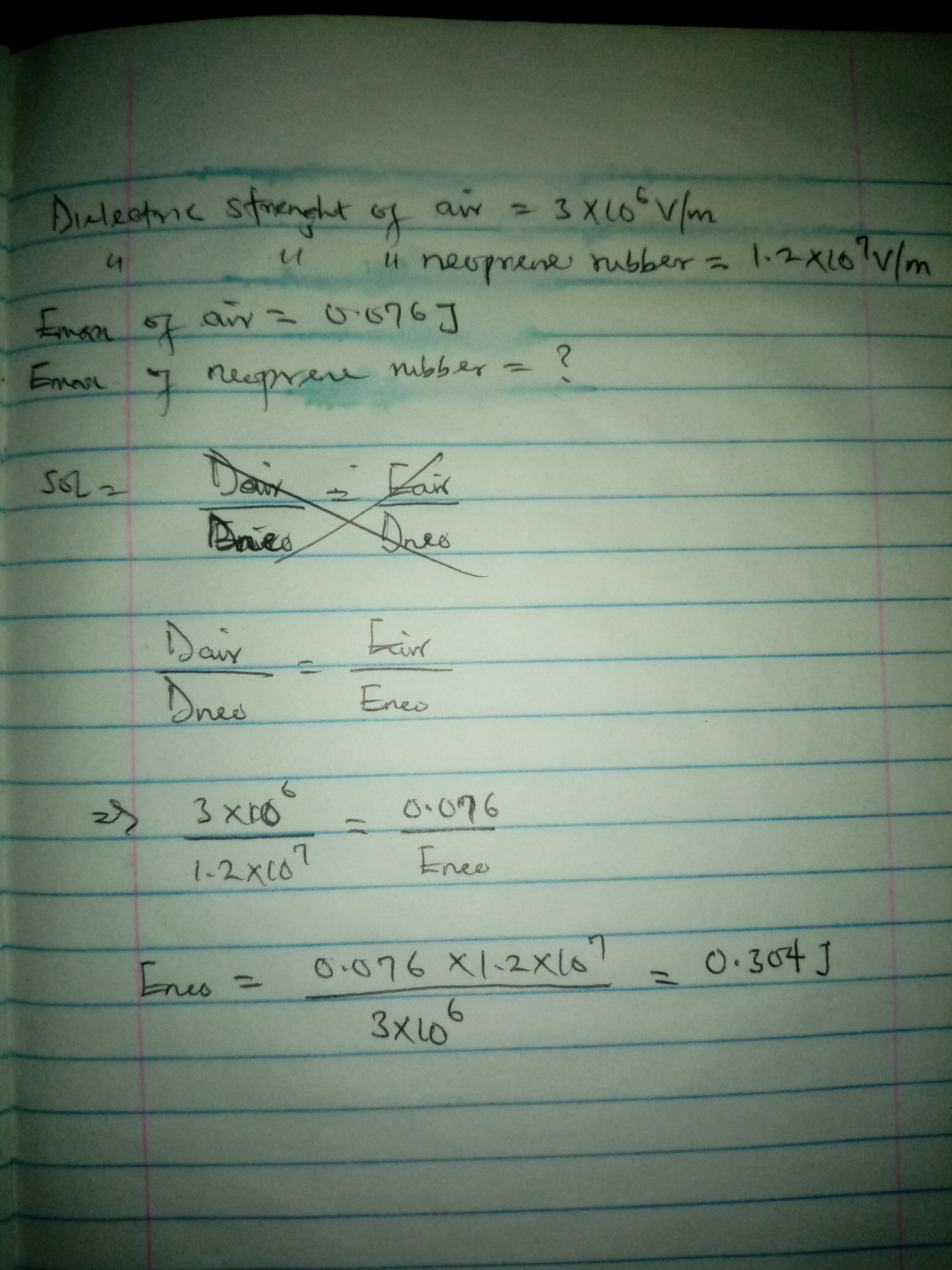 The max. Energy that can be stored in the neoprene rubber capacitor will be 0.304J