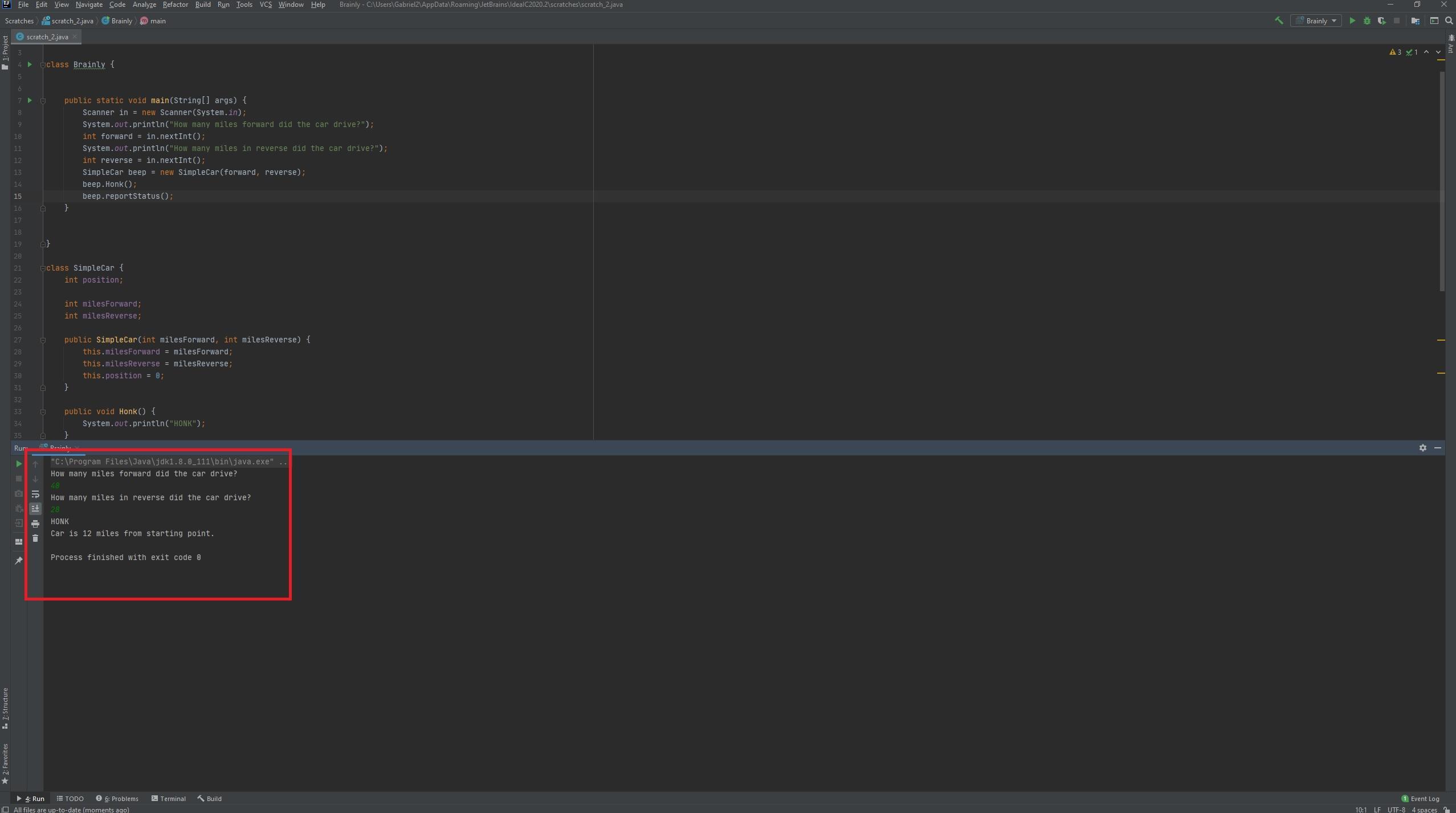 System.out.println("How many miles forward did the car drive?");