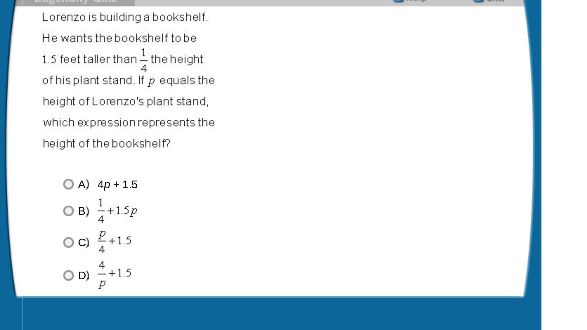 1.5 + 1/4p, which can also be written as p/4 + 1/5